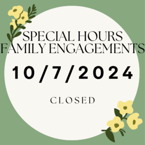 CLOSED THIS MONDAY SPECIAL HOURS