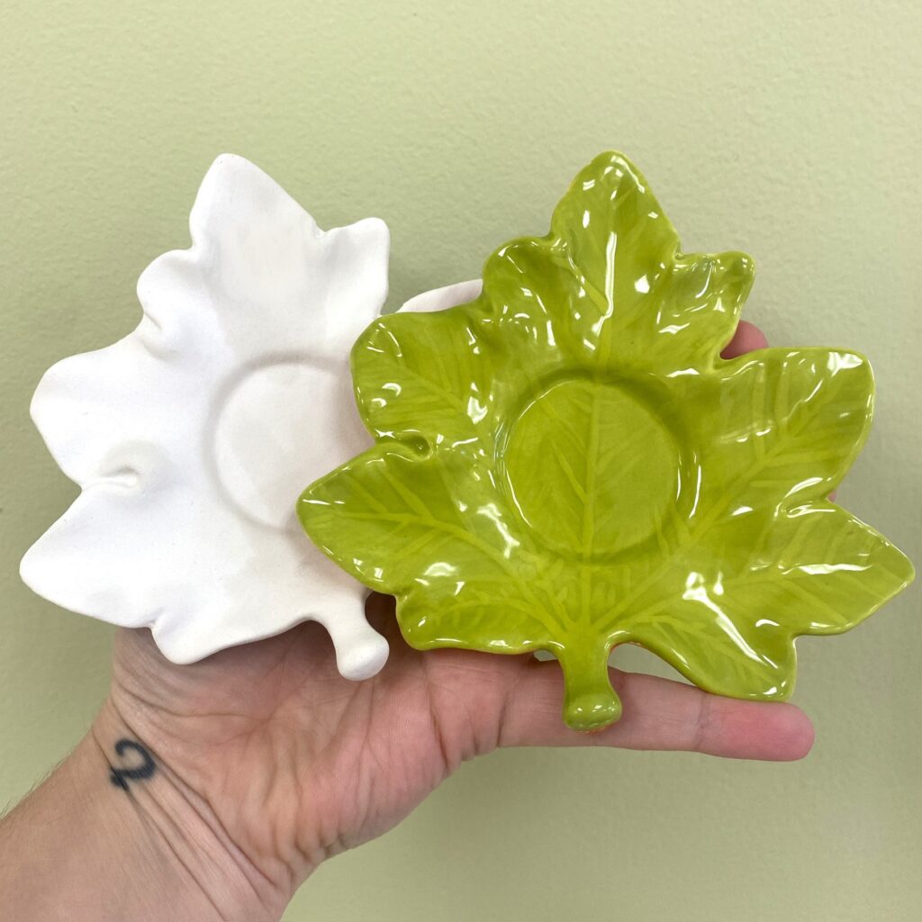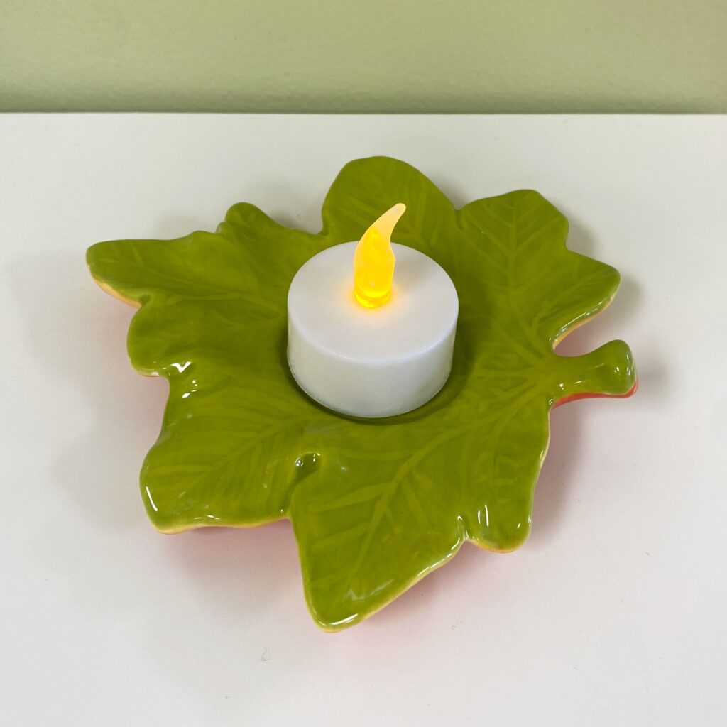 Looking for a cute way to spruce up your space that’s also functional? Come take our Leaf Tealight Holder pottery painting workshop!